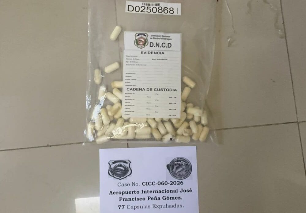 Dentro de su firme y constante misión de combatir el narcotráfico, agentes de la Dirección Nacional de Control de Drogas (DNCD) y miembros del Cuerpo Especializado de Seguridad Aeroportuaria, (CESAC) e inspectores de Aduanas (DGA), apoyados por el Ministerio Público, arrestaron a un ciudadano español, con el estómago lleno de bolsitas presumiblemente cocaína.