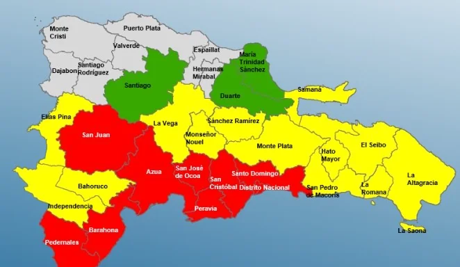 Mientras que en alerta verde 🟢están: María Trinidad Sánchez, Santiago y Duarte.