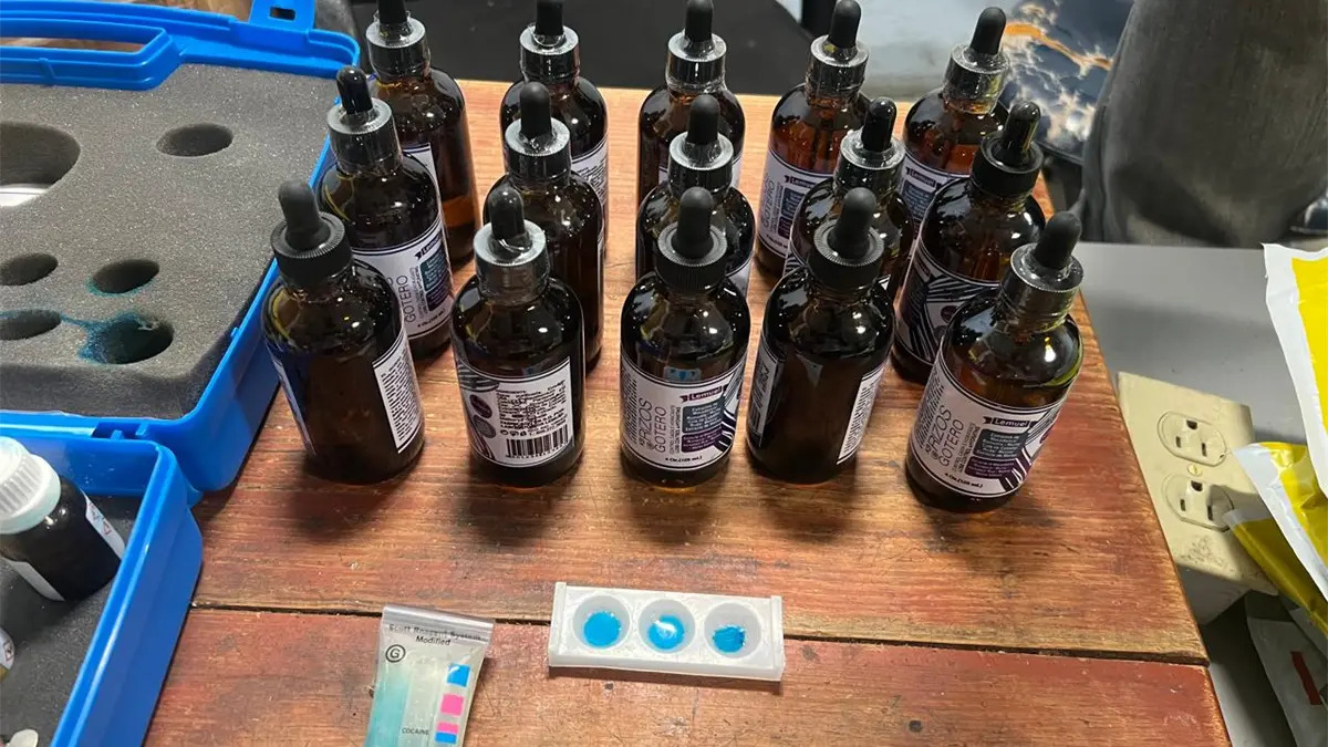 De acuerdo con una nota de prensa, durante las labores de verificación, una unidad canina detectó una alerta positiva en el interior del paquete, donde se encontraron los goteros, todos llenos de cocaína líquida, con un peso aún por determinar por las autoridades del Instituto Nacional de Ciencias Forenses (Inacif).