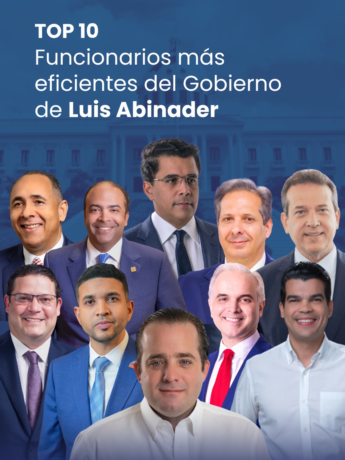 Santo Domingo.– La firma encuestadora SONDEOS dio a conocer los resultados de su más reciente estudio nacional, en el que identifica a los diez funcionarios mejor valorados por su desempeño dentro del Gobierno encabezado por el presidente Luis Abinader.