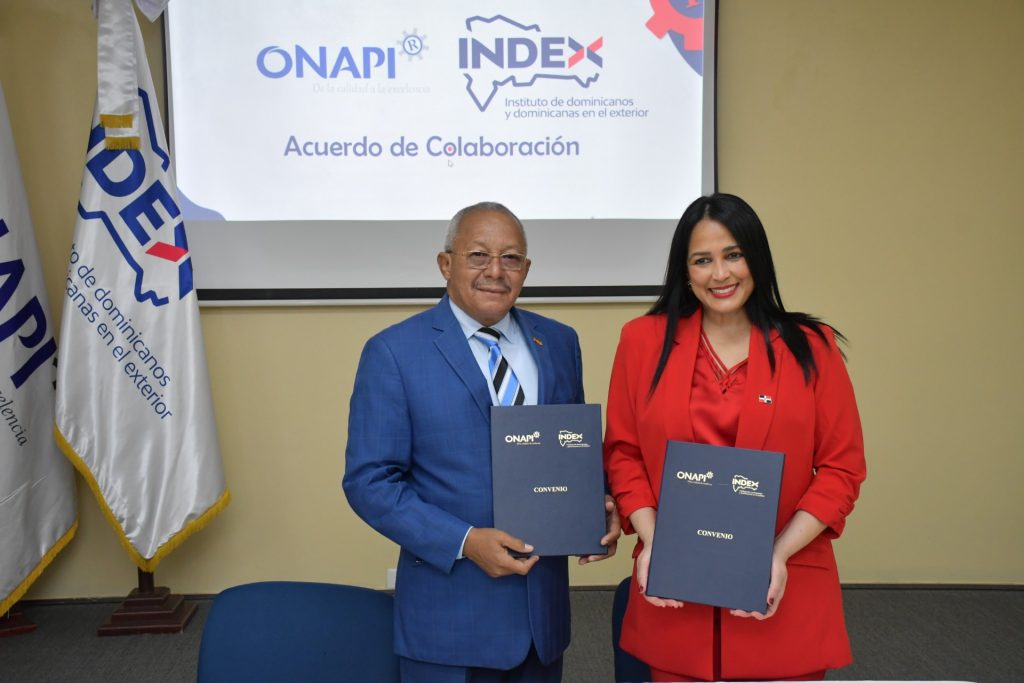 La Oficina Nacional de la Propiedad Industrial (ONAPI) y el Instituto de Dominicanas y Dominicanos en el Exterior (INDEX), firmaron un acuerdo de colaboración interinstitucional, con el propósito de proteger la innovación de los dominicanos en el exterior, en el marco de sus misiones institucionales.